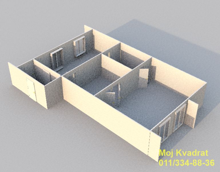 Strukturu čine: ulazni hodnik i predsoblje, dve prostrane salonske sobe, kuhinja sa trpezarijom, kupatilo i toalet. Uz stan pripadaju i podrum i ostava, a na raspolaganju je i zajednička perionica i sušionica veša, kao i zajednički tavan.