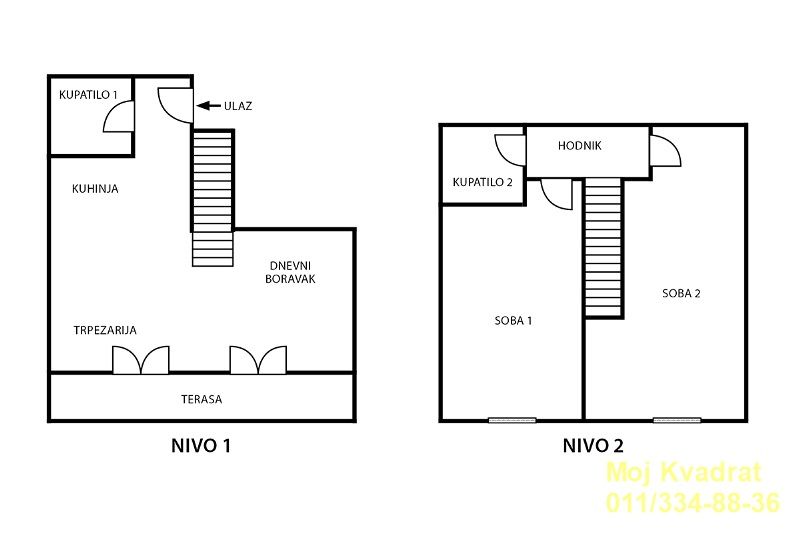 Drugi nivo (48m2) - dve spavaće sobe, kupatilo i predsoblje.