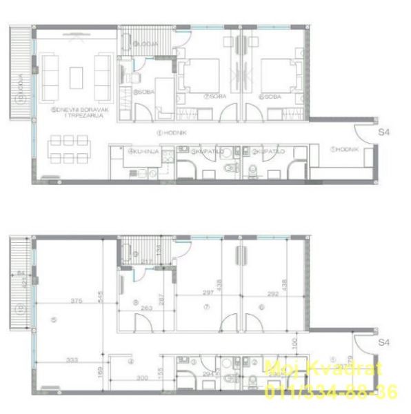U ponudi su još dva stana iste strukture i kvadrature na prvom spratu.