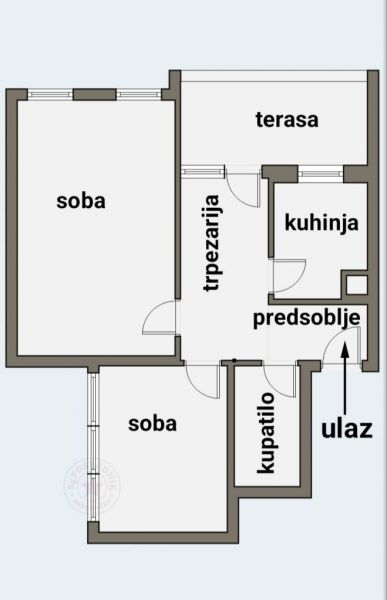 Veoma funkcionalnog rasporeda: predsoblje, kuhinja, trpezarija sa izlazom na terasu, dnevni boravak, spavaća soba i kupatilo sa toalaetom.