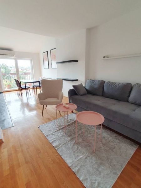 Prostorije: ulaz, dnevni boravak sa trpezarijom i kuhinjom (open space), dve sobe, kupatilo i terasa.