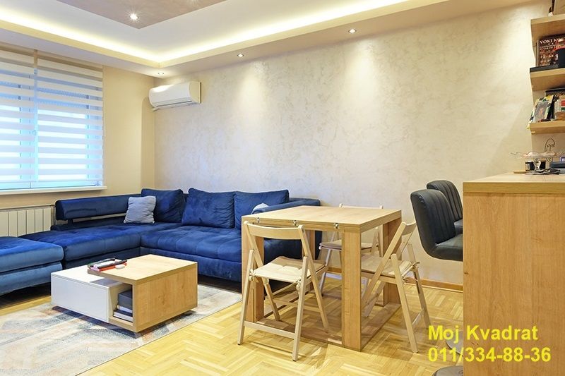 Svaki kvadrat u stanu je funkcionalan i iskorišćen. Hodnik ima veliki plakar (urađen po meri). Kuhinja je, takođe, rađena po meri i opremljena je svim potrebnim aparatima (ugradna rerna, indukciona ugradna ploča, ugradna mikrotalasna, frižider i mašina za sudove). Kupatilo je opremljeno tuš kabinom i mašinom za pranje i sušenje veša. Spavaća soba ima veliki bračni krevet i ugradni američki plakar. Rasveta u stanu je led (topla) sa potenciometrima. Parket je hrastov. Grejanje u stanu je na gas (leti se ne plaća, a zimi po potrošnji).