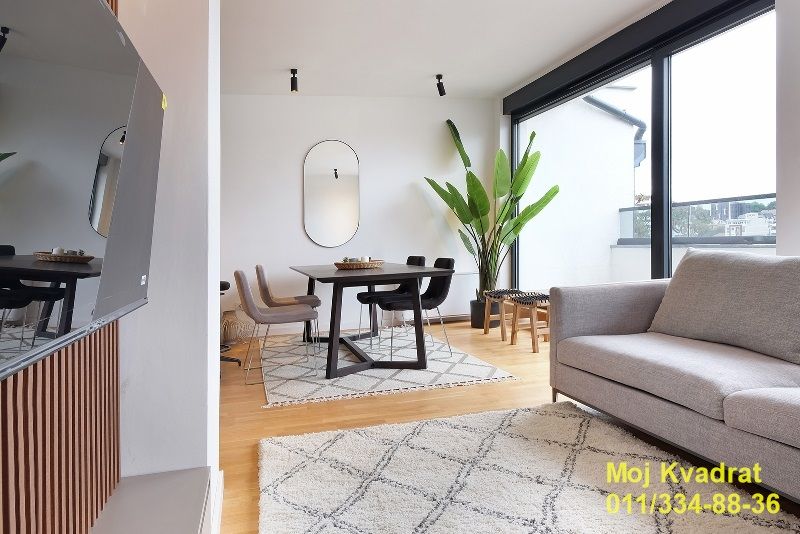 Stan je pažljivo projektovan i maksimalno funkcionalan. Ima odličnu toplotnu izolaciju. Aluminijumska stolarija sa termoizolacionim staklom i roletnama sa elektromotorima, podovi - hrastov troslojni parket, granitna keramika visokog kvaliteta.