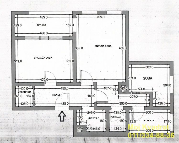 Uknjižen bez upisane kvadrature, po kupoprodajnom ugovoru korisna površina stana iznosi 67m2, a stvarna merena kvadratura sa terasom iznosi 88m2.