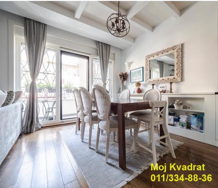 Sastoji se od komfornog dnevnog boravka sa kuhinjom i trpezarijom, dve spavaće sobe, kupatila, toaleta, terase i lepog prostranog dvorišta (oko 60m2). Visina plafona je 2.9m.