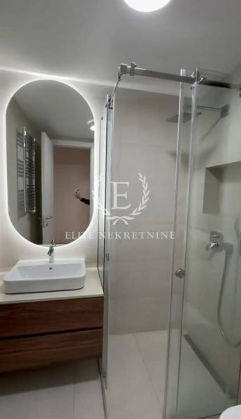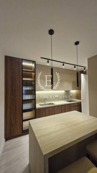 Enterijer je u potpunosti opremljen nameštajem i tehnikom vrhunskog kvaliteta, uz pažljivo odabrane materijale, tople drvene teksture i sofisticirano ambijentalno osvetljenje koje naglašava eleganciju i osećaj doma. Svaki detalj je promišljeno dizajniran kako bi prostor pružio maksimalan nivo udobnosti i estetike.
