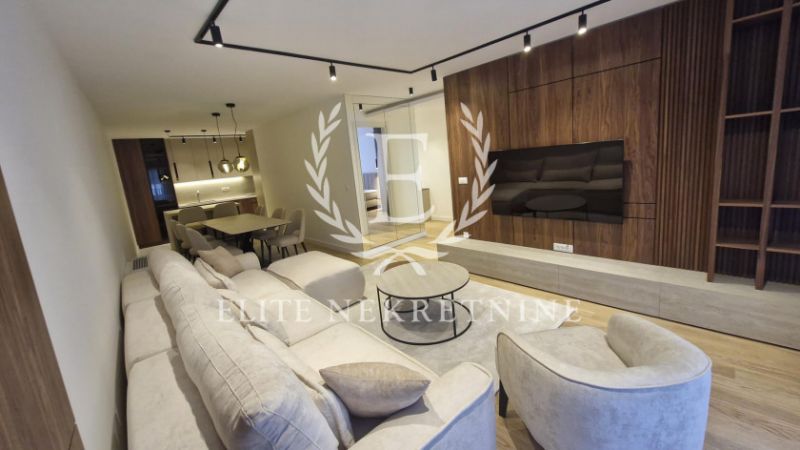 Stan se odlikuje izuzetnom prostornošću i obiljem prirodne svetlosti. Centralni deo čini elegantan dnevni boravak otvorenog koncepta, skladno povezan sa trpezarijom i savremeno dizajniranom kuhinjom, opremljenom aparatima najviše klase. Raspored obuhvata tri spavaće sobe, od kojih je jedna manjih dimenzija i idealna kao dečija soba, garderober ili radni prostor.