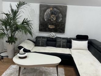 - prvi sprat je popuno renoviran i sastoji se od hodnika, kuhinje sa trpezarijom i dnevnim boravkom, dve spavaće sobe i kupatilom.