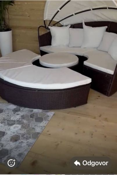 Travnjak je uredan i održava ga robot kosilica i taj deo je ogradjen visokom, zelenom veštaćkom ogradom.