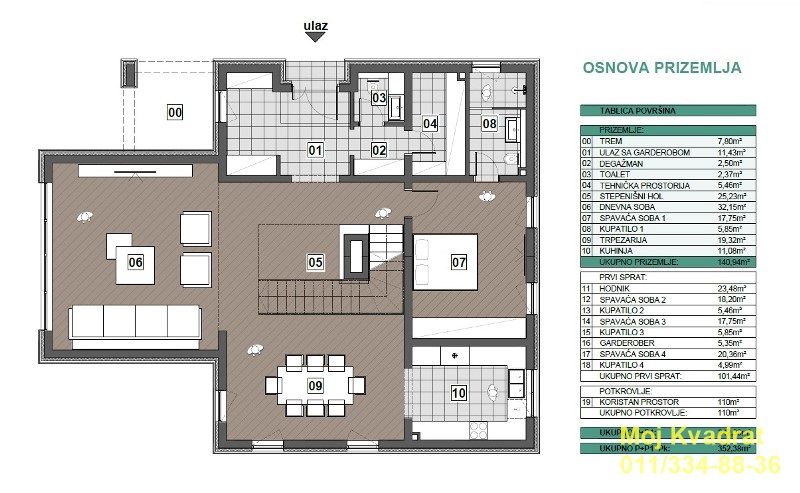 kuća, 352m2, PR+I+PTK, tri garaže, struja, voda, kanalizacija, plac 8.40 ari