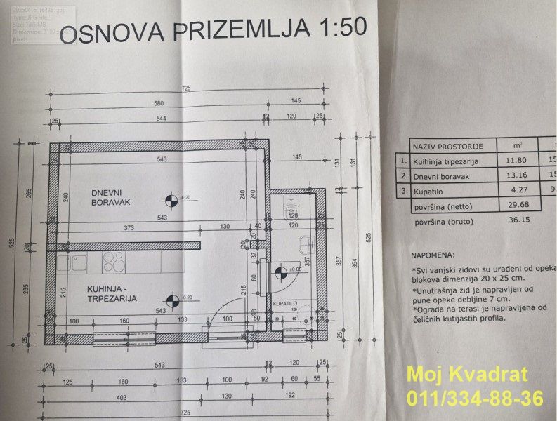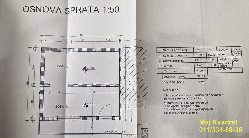 Uknjižena jedna soba bez kvadrature, ostatak predat na legalizaciju. Mereno kuća ima 110m2.