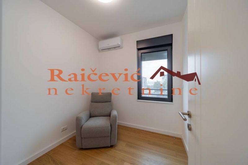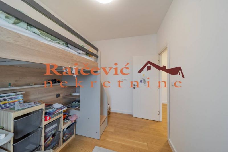 Prostorije: dnevna soba sa kuhinjom i trpezarijom (open space koncept), lodja na koju se izlazi iz dnevnog boravka, roditeljska soba sa terasom, 2 decije sobe, hodnik, kupatilo i wc.