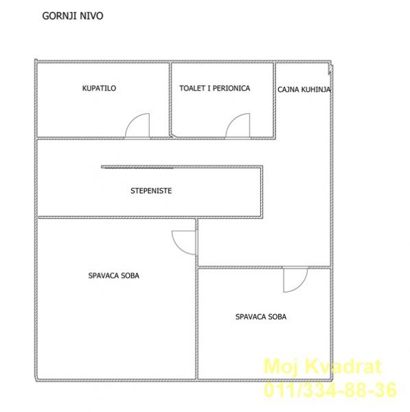 Gornji nivo: dve spavaće sobe, kupatilo, gostinski toalet
