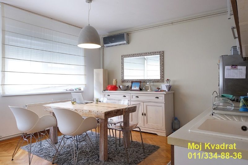 Stan je dvostrano orijentisan, zapad i istok, veoma svetao. Sastoji se od prostranog dnevnog boravka sa kuhinjom i trpezarijom, jedne veće i dve manje spavaće sobe, kupatila, ulazog hodnika. Spavaći blok je izdvojen je manjim hodnikom. Visina plafona je 2.68m, etažno je grejanje. Iznad stana se nalazi stan.