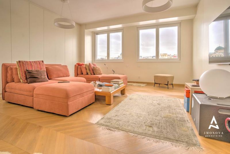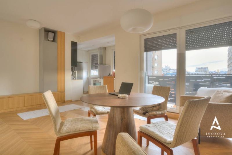 Na prodaju kompletno namešten trosoban stan sa garažnim mestom (13 m²) u novogradnji na Vračaru. Stan ima 94 m², nalazi se na 8/9 spratu u reprezentativnom stambeno-poslovnom kompleksu useljenom 2022. godine.