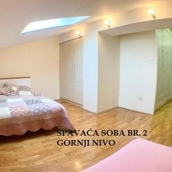✅ Gornji nivo: Tri prostrane spavaće sobe, od kojih glavna ima veliki garderober + dva kupatila sa protočnim bojlerima za neprekidno snabdevanje toplom vodom.