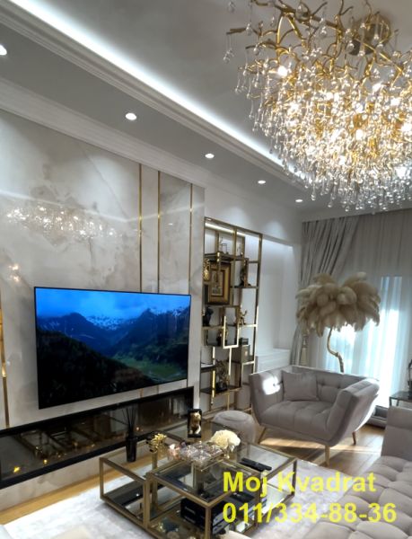 Stan je opremljen OLED televizorom od 65 inča, belom tehnikom Bosch najnovije serije 8, mašinom za pranje i sušenje veša, mašinom za pranje sudova. Od sitne opreme, stan ima najnoviji Philips aparat za espreso, Zepter prečišćivač vode, Zepter pozlaćen escajg od 48 delova i komplet Zepter šerpi i tiganja.
