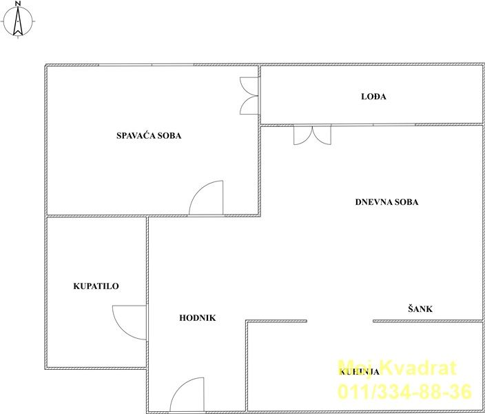 Stan je funkcionalnog rasporeda i sastoji se od: ulaznog hodnika, dnevne sobe sa kuhinjom i trpezarijom, spavaće sobe, kupatila i lođe.
