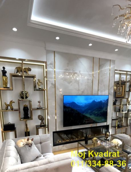 Stan je uređen najkvalitetnijim i najsavremenijim materijalima, nameštaj je uglavnom Richmond, a ostalo je pravljeno po meri od furniranog medijapana.