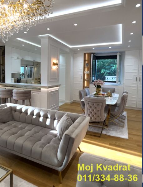 U manjoj zgradi na Dedinju, u blizini Belog Dvora, prodaje se četvorosoban, luksuzan stan od 180m2 sa pripadajućom terasom od 70m2.
