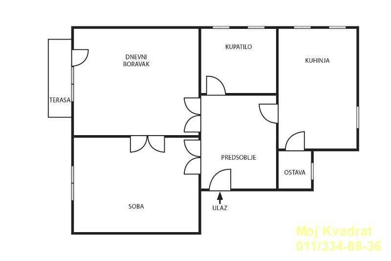 Prostorije: prostrani ulazni salon, dve velike sobe, komforna kuhinja sa trpezarijom, kupatilo, terasa i ostava.
